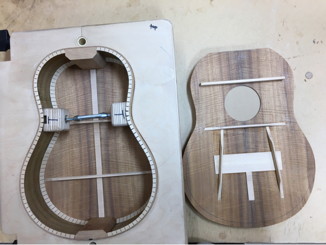 glue top onto sides, prep fretboard & neck |