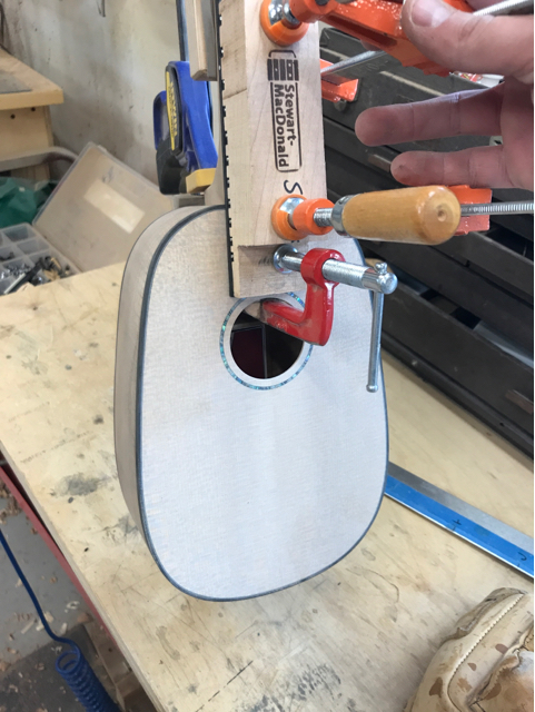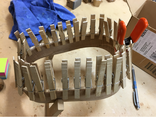 clean up body, rout dovetail, drill tuner holes, glue fretboard onto neck, rout binding channels, glue in top binding