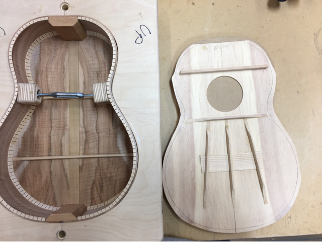 glue top onto sides, prep fretboard & neck