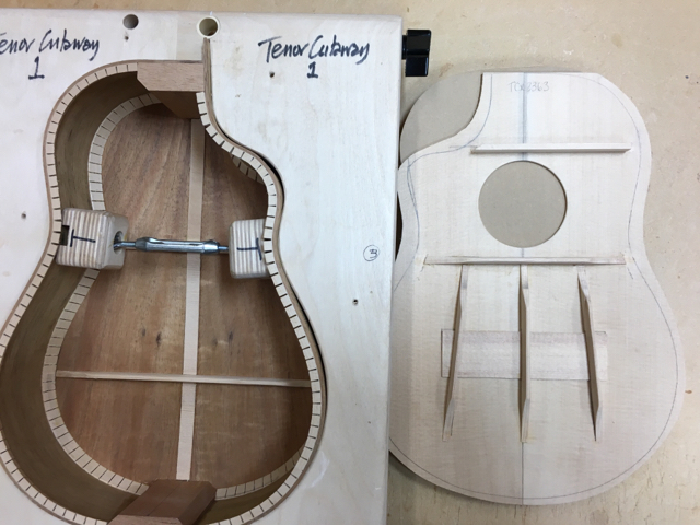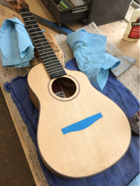 glue top onto sides, prep fretboard & neck