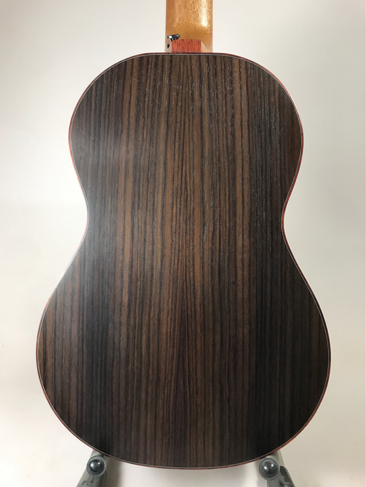 • Radiused Ebony fretboard with Ebony binding & Abalone markers