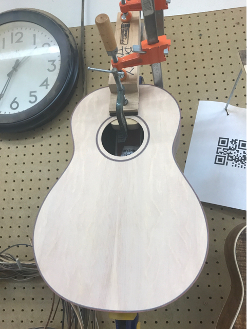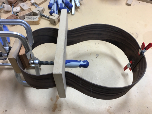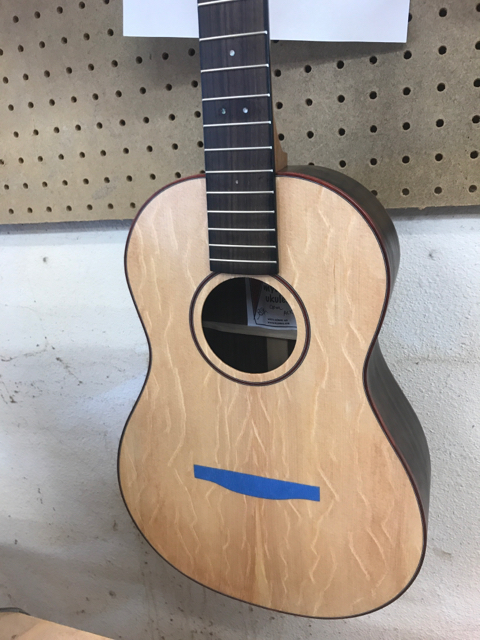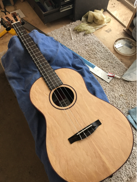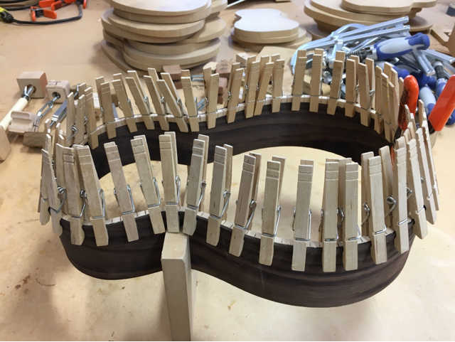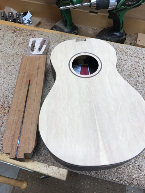 clean up body, rout dovetail, drill tuner holes, glue fretboard onto neck, rout binding channels, glue in top binding