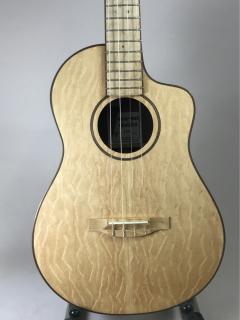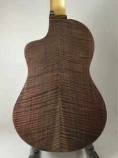• Radiused Maple fretboard with Walnut binding & Abalone markers