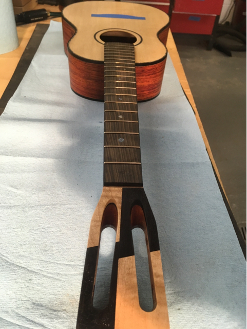 shape neck, dress fret ends, glue in back binding
