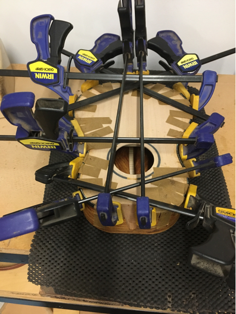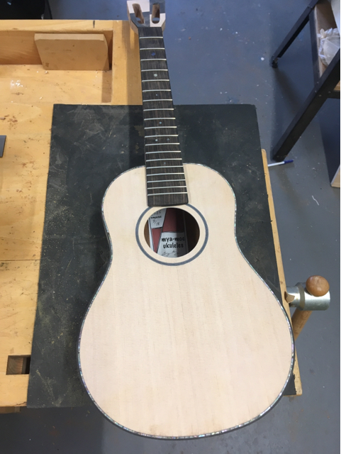 glue top onto sides, prep fretboard & neck