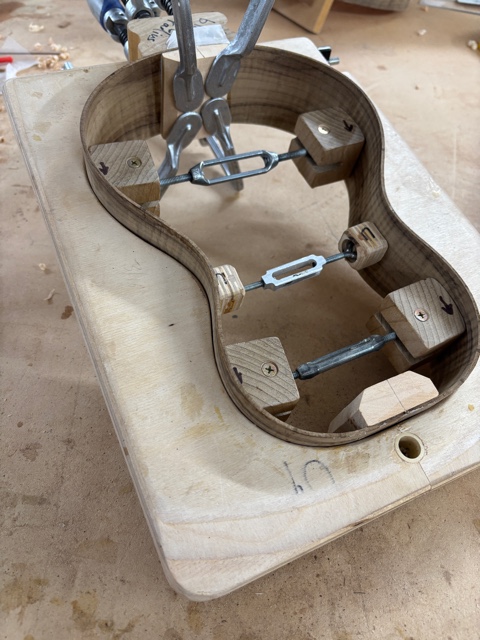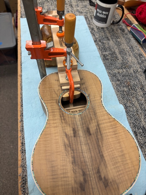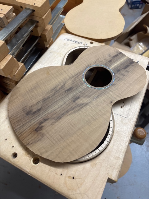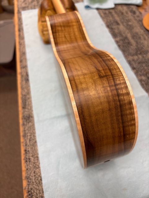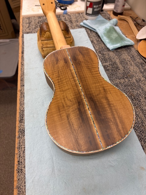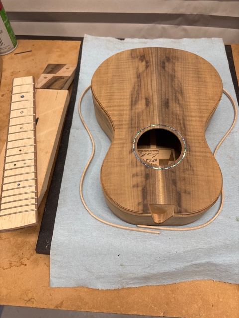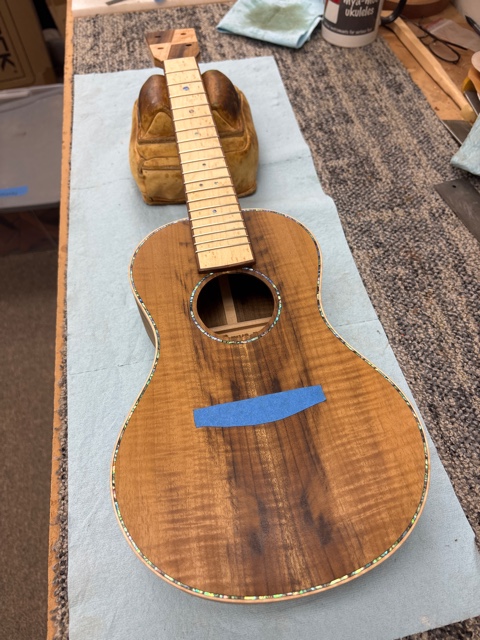 clean up body, rout dovetail, drill tuner holes, glue fretboard onto neck, rout binding channels, glue in top binding