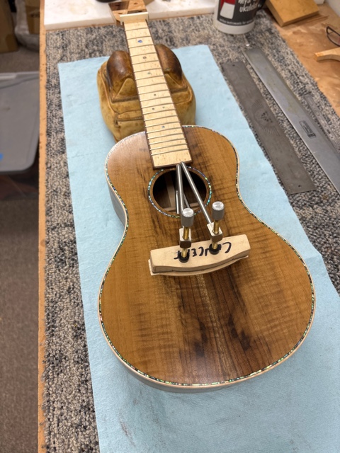 make saddle, (put in pickup, if any), cut nut, final fretwork, put in tuners, put on strings
