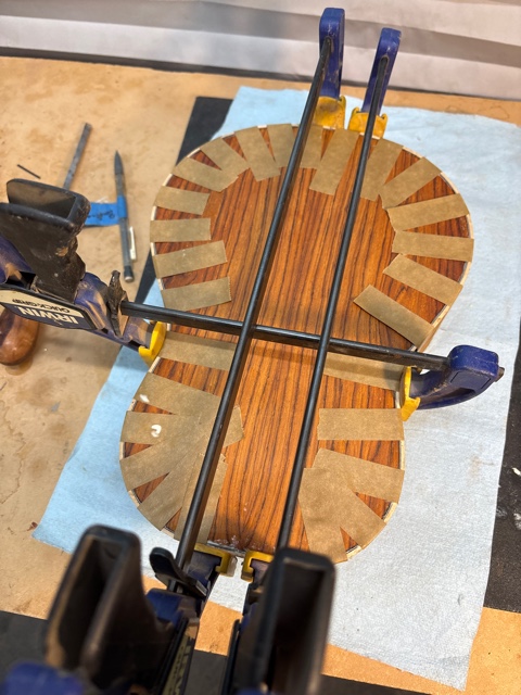 glue top onto sides, prep fretboard & neck |