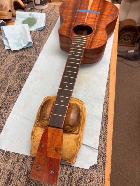 shape neck, dress fret ends, glue in back binding