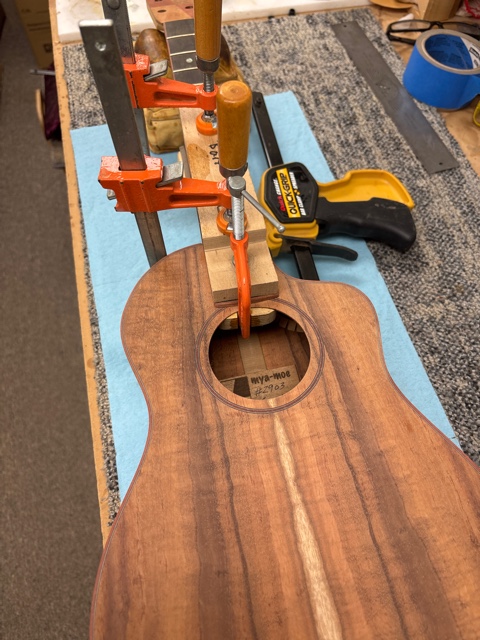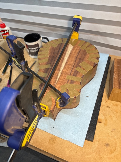 glue top onto sides, prep fretboard & neck