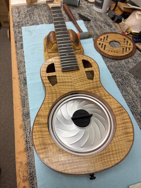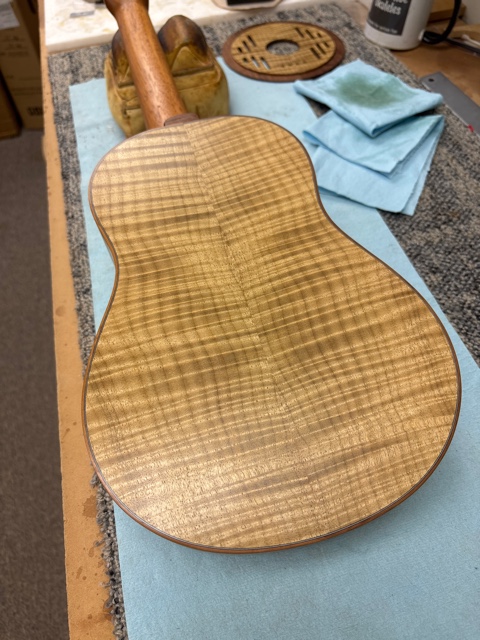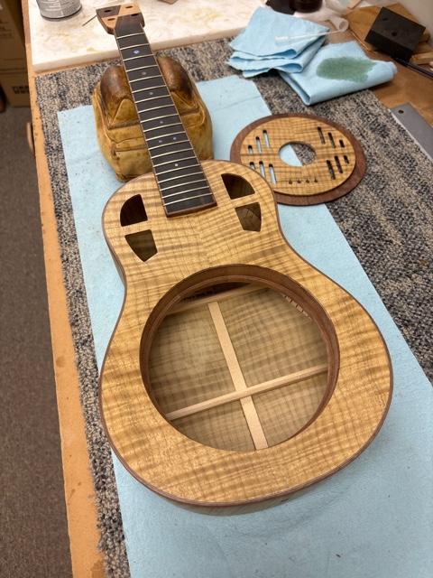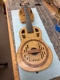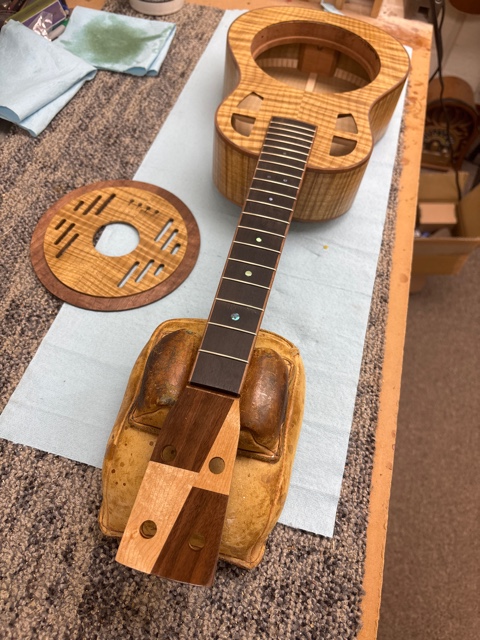 clean up body, rout dovetail, drill tuner holes, glue fretboard onto neck, rout binding channels, glue in top binding