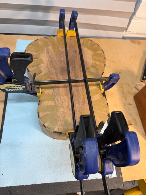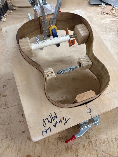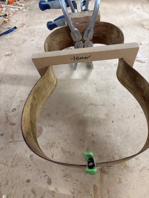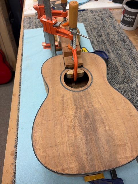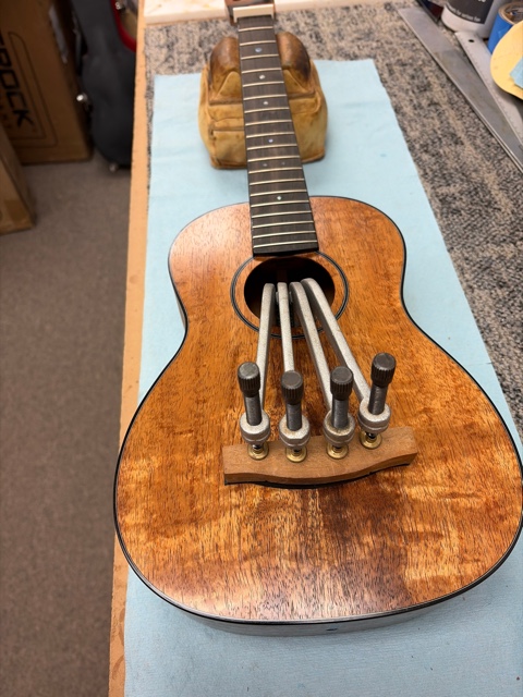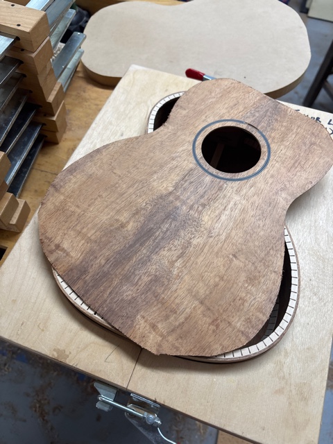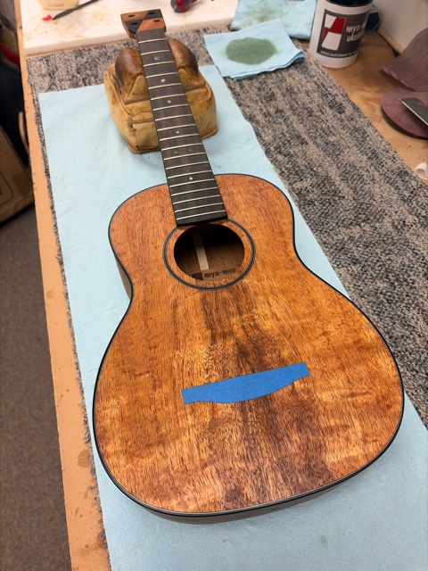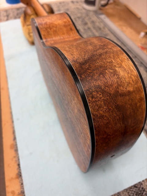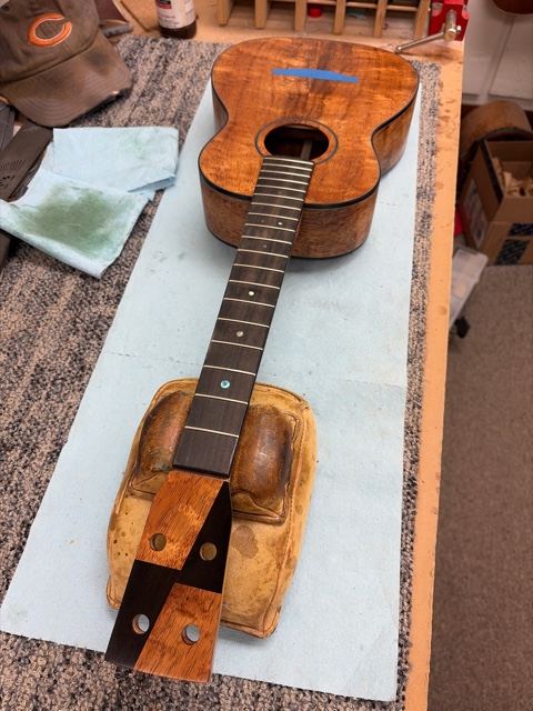 clean up body, rout dovetail, drill tuner holes, glue fretboard onto neck, rout binding channels, glue in top binding