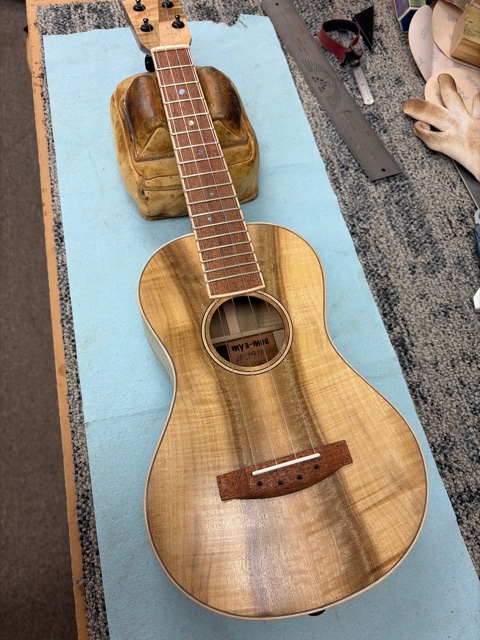 prep for finish, glue neck/fretboard onto body |