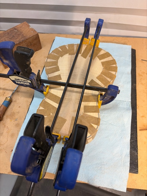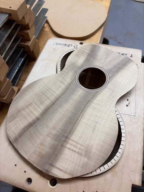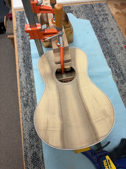 glue top onto sides, prep fretboard & neck |