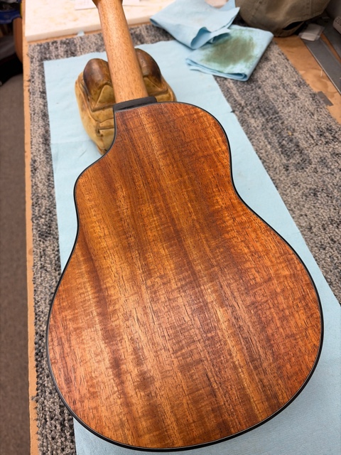 shape neck, dress fret ends, glue in back binding