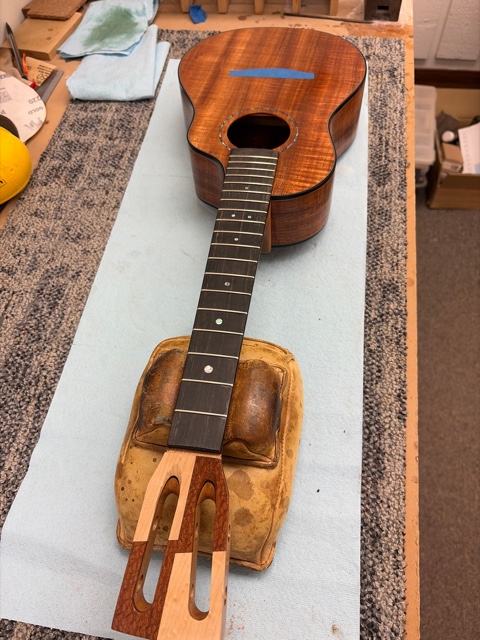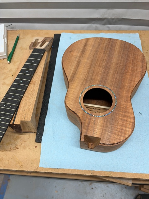 glue top onto sides, prep fretboard & neck