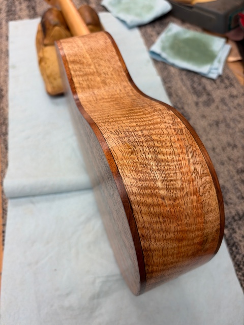 shape neck, dress fret ends, glue in back binding