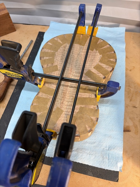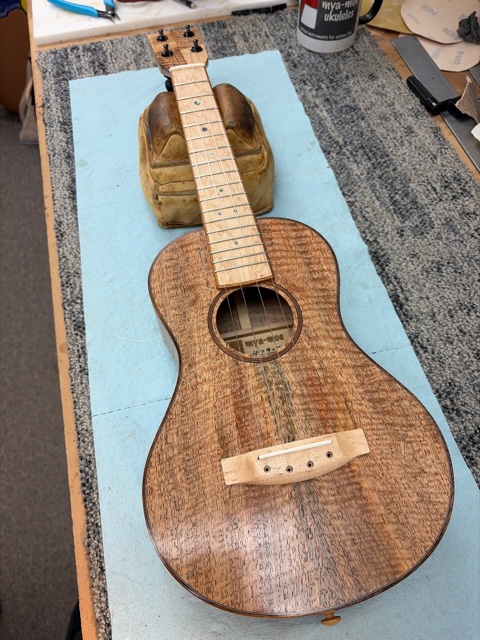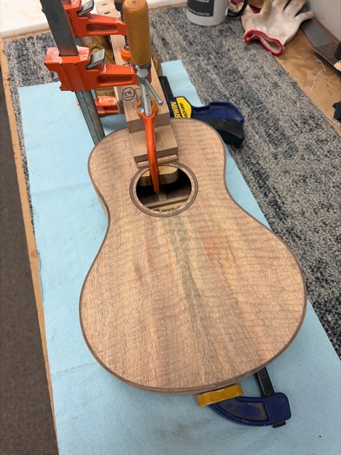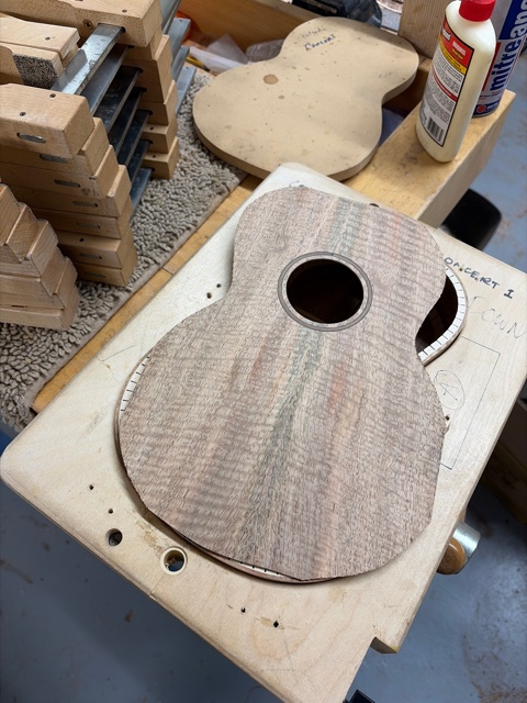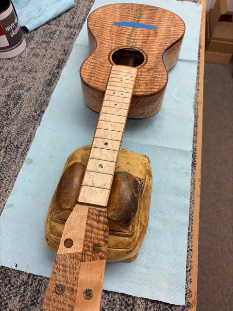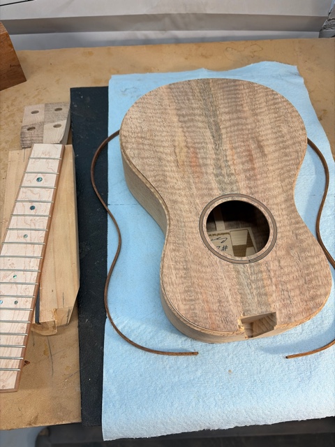 glue top onto sides, prep fretboard & neck