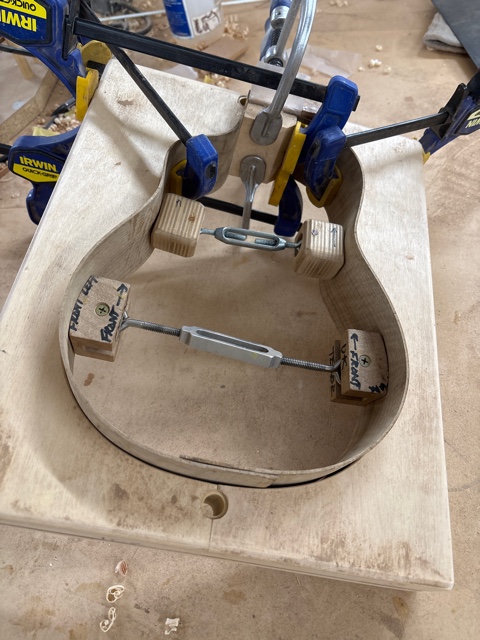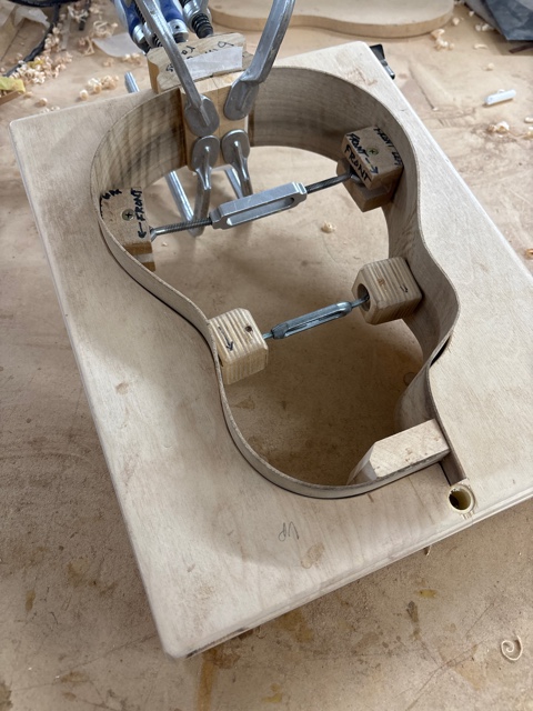clean up body, rout dovetail, drill tuner holes, glue fretboard onto neck, rout binding channels, glue in top binding