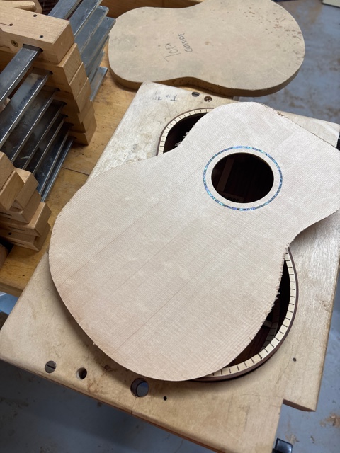 glue top onto sides, prep fretboard & neck |