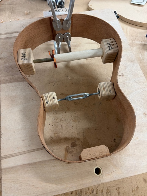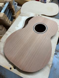 clean up body, rout dovetail, drill tuner holes, glue fretboard onto neck, rout binding channels, glue in top binding