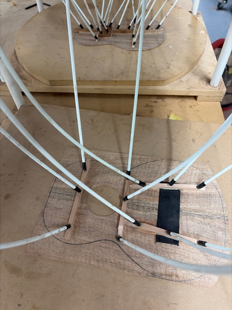 glue top onto sides, prep fretboard & neck |